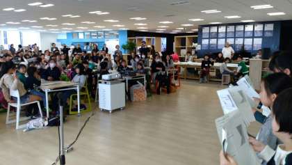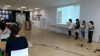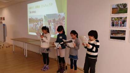 昨日お知らせした、「多摩川子どもシンポジウム」が、14日(日)、二子玉川ライズオフィス8階の「東京都市大学二子玉川夢キャンパス」で開催されました。午前10時からは、区内の多摩川沿いの学校や児童館、さらに大田区や青梅市の子どもたちも集まって、各団体の活動報告がされました。本校はその1番目に、5年生児童3名と4年生児童1名で、愛鳥活動について発表しました。「ことり文集」を読み上げたり、愛鳥検定の問題を出したりして、開場の皆さんに、日ごろの愛鳥活動の取り組みをアピールすることができました。4人の子どもたちもトップバッターとあって緊張したようですが、しっかり発表することができました。