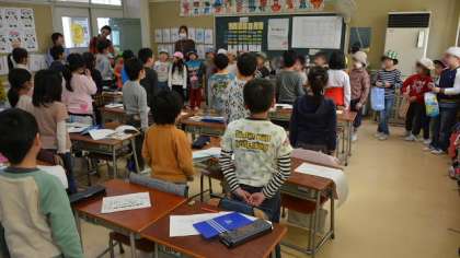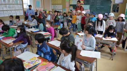 学校の近隣にある、区立玉川保育園の年長さんが、学校を訪れて1年生の授業の様子を見学しました。あと1か月ちょっとで小学生になる子どもたちです。1年生の子どもたちも、先輩としてしっかり授業をしている姿を見てもらいました。
