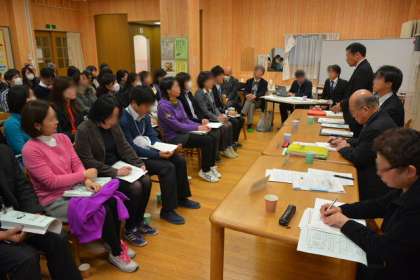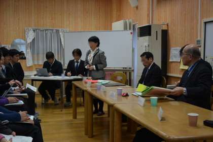 研究会の最後は、今日の参加者全員がランチルームに集まり研究全体会です、さすがに3校の教員が集まるとランチルームは満杯です。これからの研究の進め方の確認と、講師の先生から今後の研究方針の示唆をいただきました。来年度の学び舎の研究発表会、さらには再来年度の理科全国大会会場校としての発表という大きな目標をもって、この成果を日常の授業に生かしながら、授業改善を図っていくとともに、公立学校として近隣学校と連携し、義務教育9年間に責任をもった教育連携を進めていきたいと考えています。