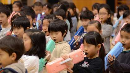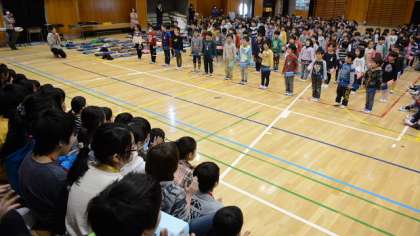 合奏は「きらきらぼし」です。一生懸命演奏した1年生に6年生から大きな拍手がおくられました。