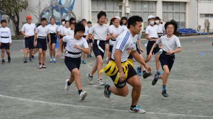 昨年度の6年生は、オリンピックに出場した女子体操選手のお話を聞く機会がありましたが、今年度は地元に練習場があるリコーラグビー部のみなさんに実技指導を受けることもできました。教え方もよく、高い水準の動きを目の当たりにすると、子どもたちもあっという間に上手になりますね。