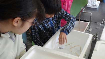 5年の理科、ものの溶け方の学習を活用した実験です。できあがるのは明日です。どんな結晶ができるでしょうか。楽しみです。