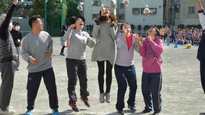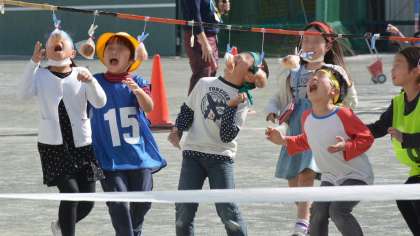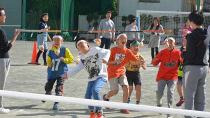 準備運動の後はいよいよパン食い競走です。みんな張り切ってパンにかぶりつきます。最後は本校職員が招待をうけて登場。子どもたちの声援をうけて大ハッスルです。楽しいイベント企画、いつもありがとうございます。年度末のよい思い出になりました。