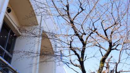 20日に東京は桜の開花宣言が出ましたが、学校の東側、体育館の横にある桜の花も咲き始めました。