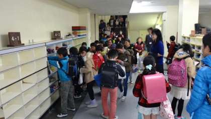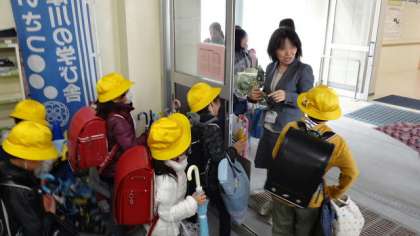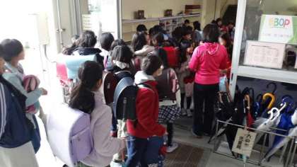 12時、下校です。担任も昇降口までお見送り。なんとなく別れがたい雰囲気です。4月は進級して、また元気な姿を見せてね。