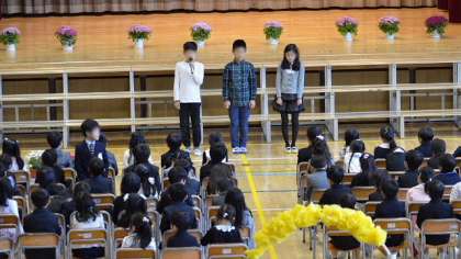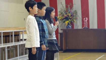 続いて6年生代表による歓迎の言葉です。さすが最上級生になった6年生。原稿を見ないでしっかり言葉が言えました。