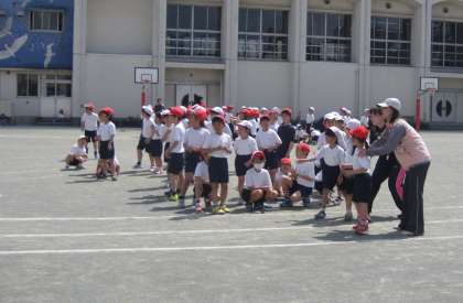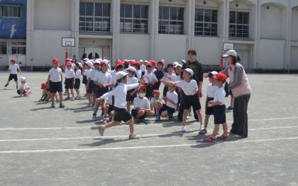 「走の運動遊び」の学習をしています。リングバトンを渡したり受けたりしながら、リレー遊びをしました。今日は、確実に受け渡しができることを目標にしました。運動会に向けて、少しでもリードしてバトンパスができるようになればと思います。