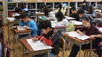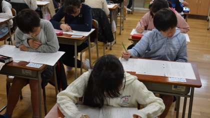 14日(木)、5・6年生で、1校時から4校時まで世田谷区の「学習習得確認調査」を実施しました。国語、算数、理科、社会の4教科で、前の学年まで学習した内容について、基本的な学習の習得状況をテスト形式で行いました。写真は1校時の5年生のようすです。みんな真剣です。