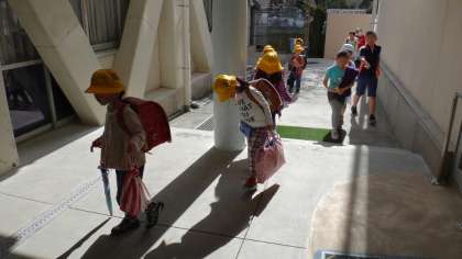 週明けの18日(月)の1年生の様子です。入学式から2週間近くになり、登下校にもなれ、朝チャイムが鳴るまでの時間も整然とすごせています。担任やそれ以外の教員、そして6年生も当番で昇降口に立ち、1年生を温かく迎えています。