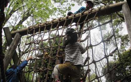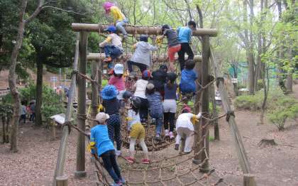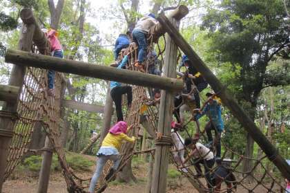 はじめのフィールドアスレチックは、かなり難関で途中で引き返す子もいました。見ている大人の方がハラハラしました。子どもたちのチャレンジ精神はすばらしかったです。
