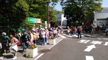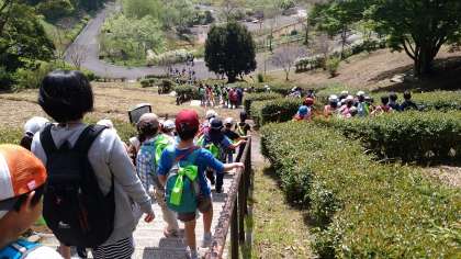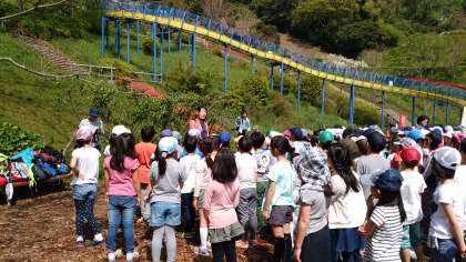 駐車場から歩いて、遊具のある公園に移動。注意を聞いてさあお楽しみ!
