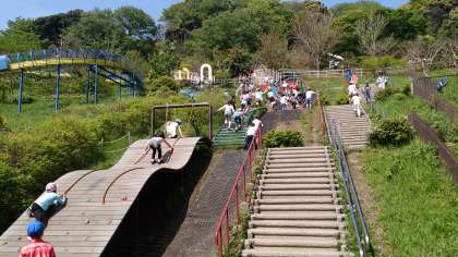 滑り台やアスレチックで、夢中になって遊びます。楽しい!