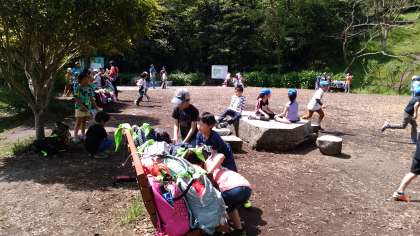 遊び疲れて少し休憩。でも、元気な3年生は、ふたたび遊び始めました。