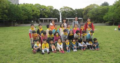 アスレチックで思い切り楽しんだ後は、大きな広場でクラス写真を撮影して、お弁当を食べました。どの子のお弁当も美味しそうなものばかりでした。