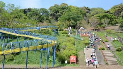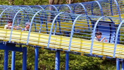 この公園のハイライトは、この長いローラー滑り台です。この高さを右左にうねりながら一気に滑り降ります。