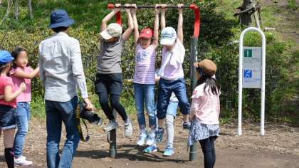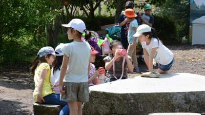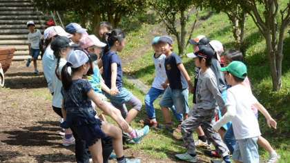 遊び疲れてしばし休憩。その後は、また元気を取り戻し、くったくなく遊び始める子どもたち。カゴメカゴメまで始まりました。