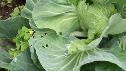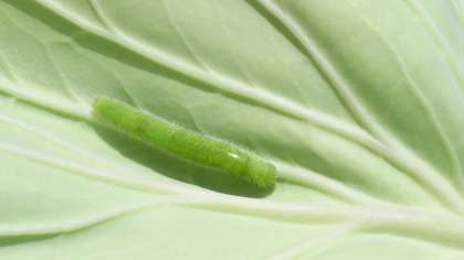 3年理科「昆虫の育ち」の学習用に職員室前に植えているキャベツの葉には、モンシロチョウの幼虫(アオムシ)が・・・。結球し始めているキャベツもあるので、もったいないような気もしますが、このキャベツの葉はもちろん無農薬ですから、3年生が育てるモンシロチョウのえさになります。