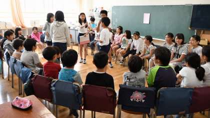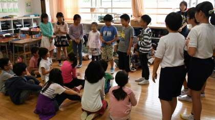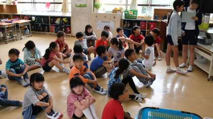 10日(火)昼休みは、「なかよしタイム」今年度1回目を行いました。1年生から6年生が一緒のグループを編成して、1年間同じメンバーでお楽しみのゲームをしたり、給食を食べたりします。
