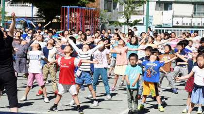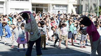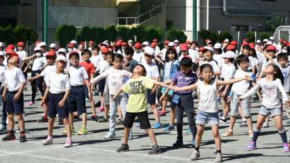 手足をしっかり伸ばすところ、体をそらすところなど、高学年はさすがに上手です。運動会ではもう少し上手になったラジオ体操をご覧いただけるよう、練習します。