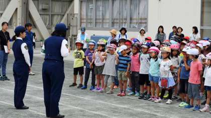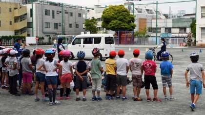 14日は土曜授業日で、3年生は2・3校時に自転車交通安全教室を行いました。今年度から、学校の授業時間に3年生全員を対象に行い、実際に自転車に乗る実技実習を行うこととなりました。PTA校外委員会の皆様にもお手伝いいただき、家から保護者の方に持ってきていただいた自転車をお借りしました。2クラスずつ、校庭とランチルームにわかれ、ランチルームでは自転車の点検方法や乗り方についてのビデオを見ました。