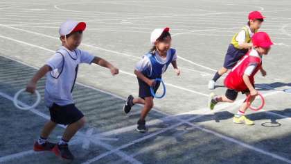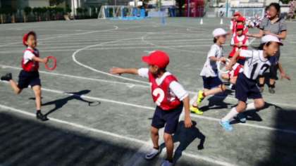 18日(水)低学年リレー朝練習のようすです。選抜の選手で行う練習としては2回目ですが、前回に比べると、ずいぶんうまくなってきました。リレーが上手になったぶん、接戦になっています。