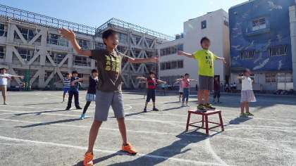 19日(木)、応援団の朝練習を始めて校庭に出て行いました。体育館に比べると声が響かない校庭での練習で、最初戸惑い気味だった子どもたちですが、だんだん慣れてきて大きな声が出るようになりました。さすが応援団!