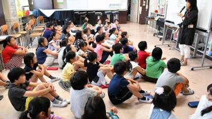 3日(金)、今年度合唱団の活動が始まりました。本校の合唱団は、運動会後の今の時期、4・5・6年からに希望者を募り編成し、週2回朝8時45分からの朝練習を行っています。目標は3学期の「合唱交歓会」です。新しいメンバーをむかえ、さあスタートです。