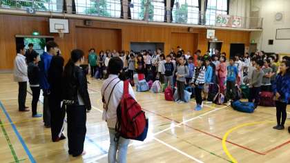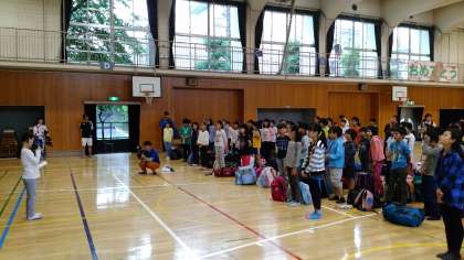 6月13日(月)から15日(水)までの3日間、5年生が群馬県川場村にある区の施設「ふじやまビレジ」を利用して移動教室を行います。今日はその出発の日。いつもより1時間ほど早い朝7時に学校に集合した子どもたち。朝からあいにくの雨で、体育館に集合。児童代表の言葉や引率者の紹介など出発式を行いました。移動教室のようすは随時、速報版として可能な限りアップします。また、その日のようすを改めてまとめて「ハイライト」としてアップします。お楽しみに。