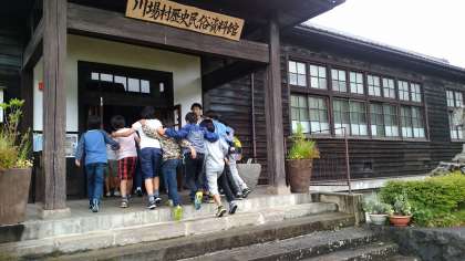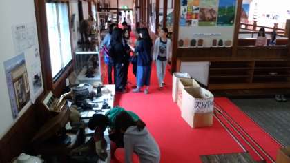 歴史民俗資料館の見学をしているこどもたちのようすです。