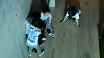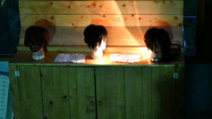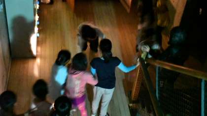 ふじやまビレジの館内で肝試し開始。あちこちにお化けが待ち受けています。4・5人のグループで回りました。怖くないよとい強がりを言っていましたが・・・あちこちから悲鳴が・・・