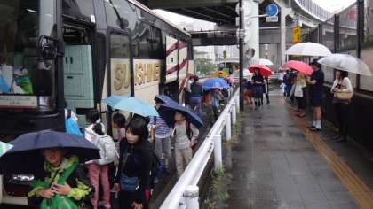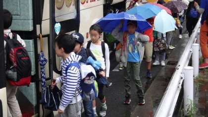 13日(月)川場移動教室1日目が無事終了しました。速報版でようすをお伝えしましたが、改めて今日を振り返り、ハイライトシーンをお伝えします。今日は朝から雨が降り、バスに荷物を運ぶのも大変な状況でした。スタートから雨で先行きが危ぶまれましたが、その後の予定は比較的順調に進みました。