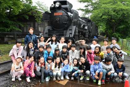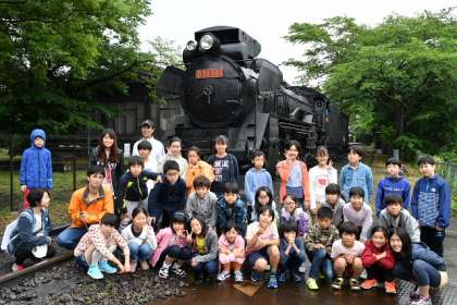 SL前での記念撮影。この頃には雨が小降りになってきました。