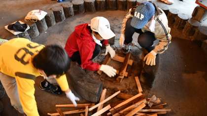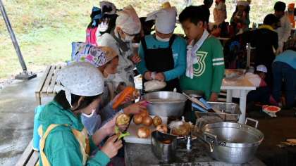 午後のハイライトは飯ごう炊さんです。子どもたちの一生懸命な姿をご覧ください。