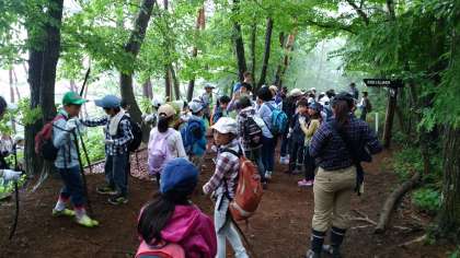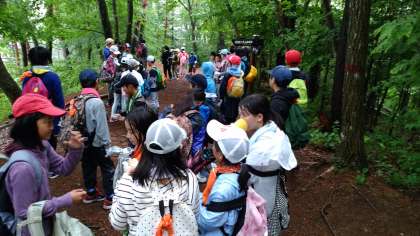 ハイキングコースの頂上にあたる場所で休憩をとります。林間のくねくねとした上り坂が多かったので、けっこう疲れました。