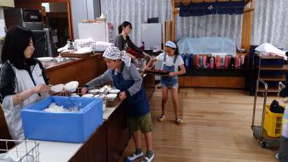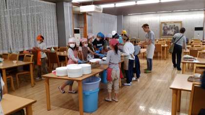 夕食の準備も食事係が先行して担当します。よく働く子どもたちです。
