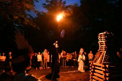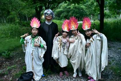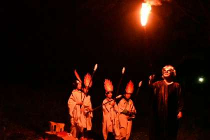 夜のハイライトはキャンプファイヤー。火の神、火の子が登場して、誓いの言葉を述べます。