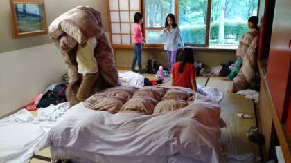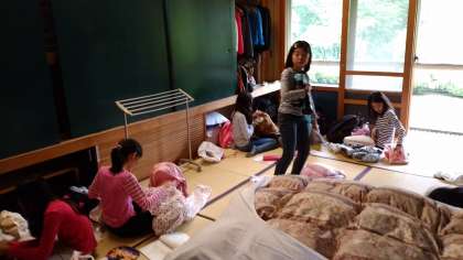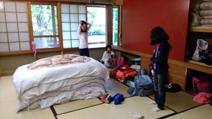 出発準備、こちらは女子の様子です。荷物が多いのか?男子より手間取っていました。