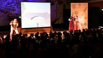 プロジェクターで映し出される動画や背景画、そして古典的な影絵の手法と、演劇的な表現のコラボレーションで、おなじみのお話が色鮮やかに描かれました。子どもたちは夢中になって、約1時間半があっという間にすぎました。