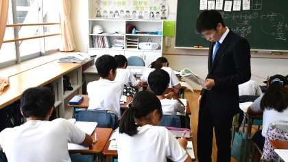 先週から2週間、1・2・6年の各1クラスで3人の大学生が教育実習を行っていました。その実習も今日が最終日。それぞれの授業を参観しました。6年生は算数の授業。分数でしか正確に表せない数量と、小数の数量を分数に変えて計算する学習です。準備もしっかりして、授業に臨んでいました。子どもたちも一生懸命学習していました。