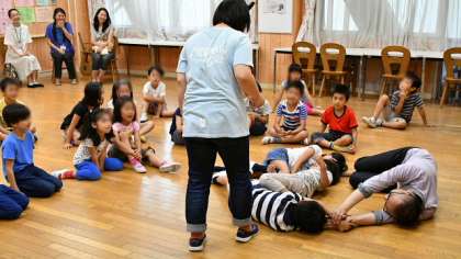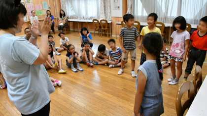 22日(水)午前、2年生の2クラスで「世田谷パブリックシアター」の出前授業を行いました。毎年取り組んでいる活動で、プロの劇団員のみなさんに、音声表現や身体表現について、実践を通して学んでいます。今年度は2学期に学芸会があります。この授業が生きるとよいですね。明日も残りの2クラスで授業が行われます。学校公開期間中ですので、来校してご覧ください。