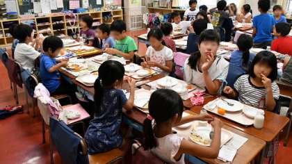 クラスで食べるときとは違って、普段あまり会話したことのない友達と一緒の班で、最初は緊張気味でしたが、やがて打ち解けて会話が弾みます。