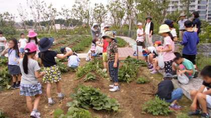 6日(水)、2年生が二子玉川の商業複合施設屋上に借りている屋上菜園を訪れ、植えてあるサツマイモの観察と水やりをしてきました。だいぶ大きく育ってきた葉が広がり始めています。去年はたくさん収穫できたので、今年も楽しみです。