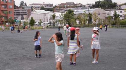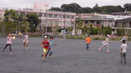 水やりの後は、隣の二子玉川公園の広場で思いっきり走り回って遊んできました。
