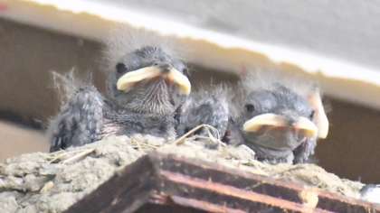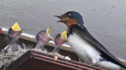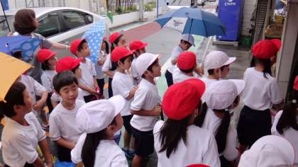 学校の西門前の商店街の一角、八百屋さんがあります。その軒先にツバメが巣をつくり、ヒナがかえりました。親鳥が盛んに行き来して、えさを運んでいます。9日(土)、お店の方のご厚意で、1・2年生の子どもたちにそのようすを見せていただくことができました。