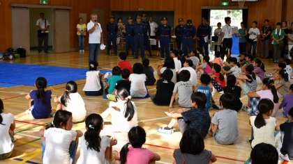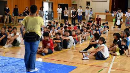 午後3時15分、参加者全員が体育館に集合、開会式を行いました。関係団体のみなさんからご挨拶をいただきました。