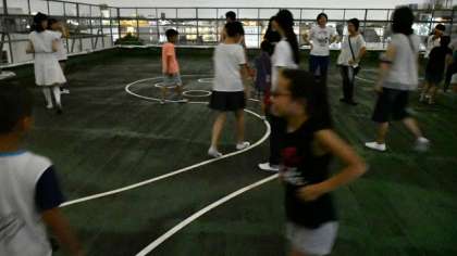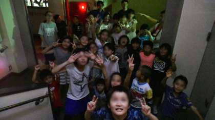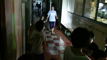 ナイトツアーは何かと話題の北校舎へ・・・ちょっと不気味です。屋上にも上りました。