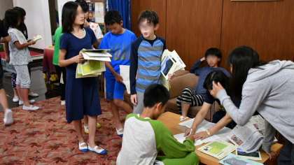 就寝は9時30分。その前に準備をして、健康カードに体温や健康状態をチェックして、保険係が養護教諭に報告します。病人はなく、みんな元気です。