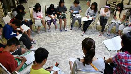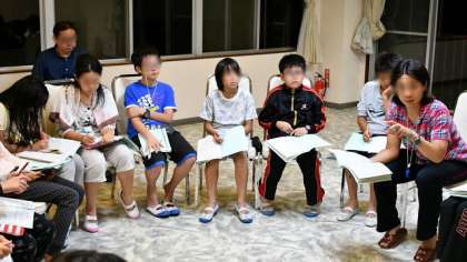 室長会議のようすです。明日の日程の変更点をメモしたり、今日1日のようすを振り返ったりして、明日に備えます。遅くまでご苦労様。今日1日小雨が降り続く天気でしたが、ほぼ予定通りに活動できました。9時30分消灯で、明日に備えます。それではお休みなさい。このあと、学校日記では、本日のハイライトシーンをお送りする予定です。(遅くなると思いますが・・・)