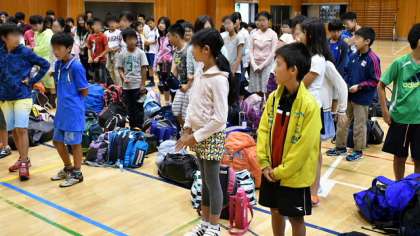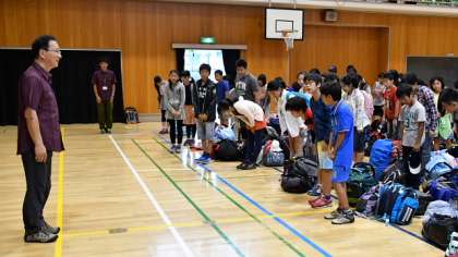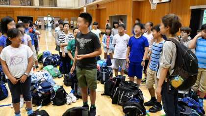 22日(金)から始まった6年生の日光林間学園。1日目のハイライトシーンをご覧ください。今日は今朝から雨。出発式は体育館で行いました。この学年は小さいときから雨にたたられていた・・・ということですが、さらに引率の校長も「雨男」?!という噂が・・・