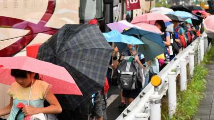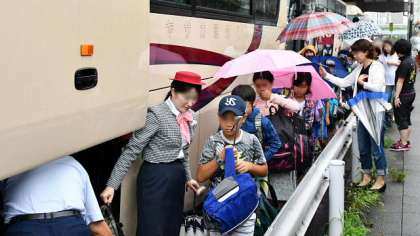 雨の中、本校職員も手伝って荷物をバスまで運びました。雨にもかかわらず、多くの保護者の皆さんがお見送りにいらっしゃってくださり、子どもたちは元気に出発しました。